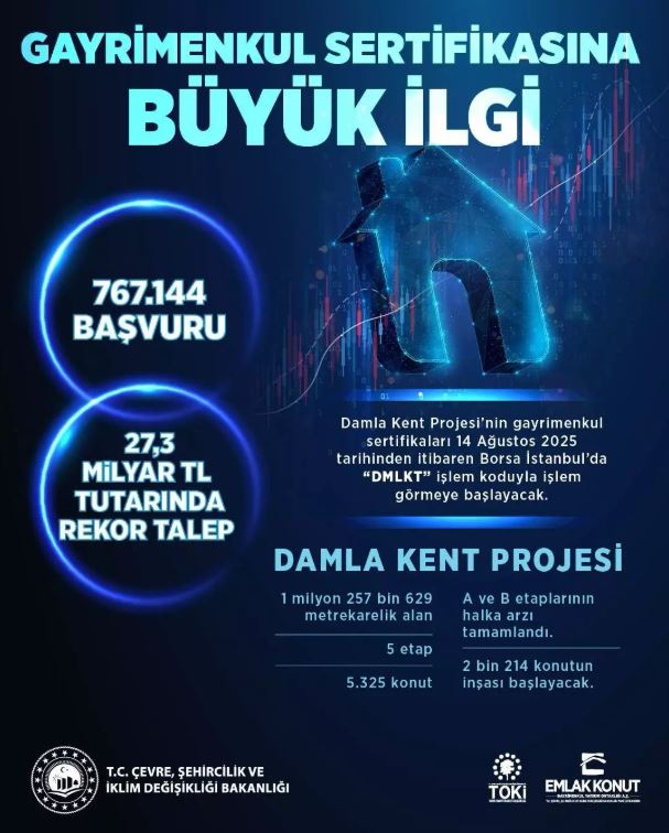 "Beklenenden yaklaşık 2 kat fazla, 27,3 milyar liralık rekor talebe ulaştık. Bu talep küçük tasarrufların güvenle büyük yatırımlara dönüşmesinin en güçlü göstergesidir. Projemize inanan, güvenen herkese teşekkür ediyorum. Bu ilgiye karşılık Damla Kent Projemizin diğer etaplarını da halkımıza sunacağız. Milletimizin konut sahibi olabilmesi, sağlıklı yapılara kavuşabilmesi için tüm imkanlarımızı kullanıyoruz, kullanmaya da devam edeceğiz."
