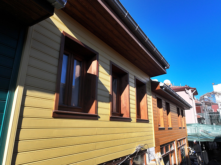 Ahşap kaplama ile yenilenen ve pastel tonlarda boyanan dükkanların çevrelediği dar sokak, estetik bir görünüme kavuştu.