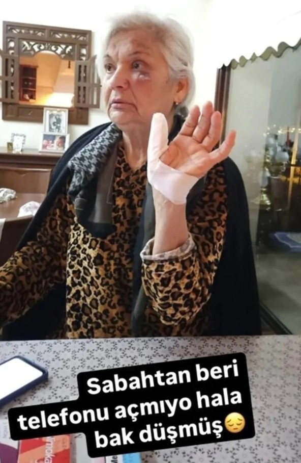 Parmağını inciten ve gözü morarıp şişen annesinin fotoğrafını paylaşan Demet Akalın, "Sabahtan beri telefonunu açmıyor hala, bak düşmüş" dedi.