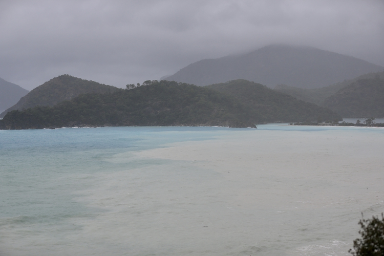 Kentteki aşırı yağış sebebiyle çamurlu yağmur suyunun döküldüğü Ölüdeniz Mahallesi'nde denizin rengi kahverengiye döndü.