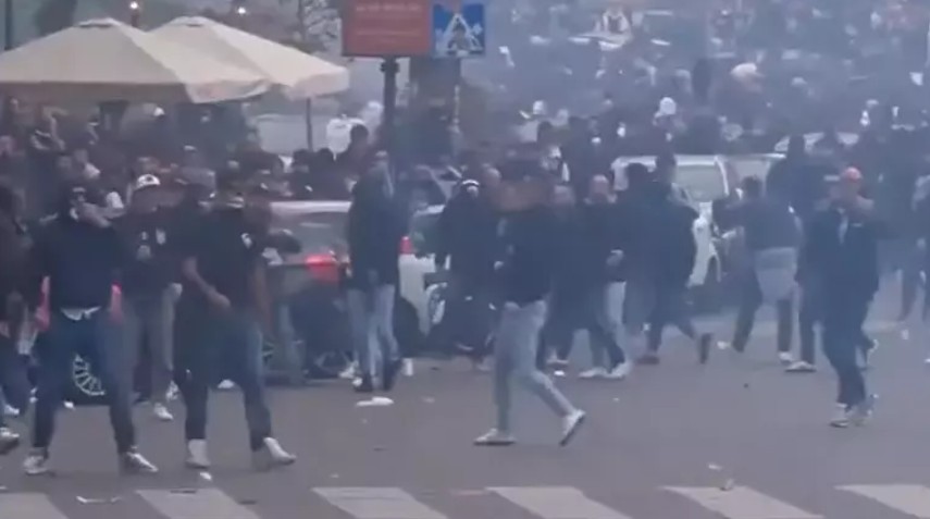 Bu sırada bir grup Lazio taraftarları polisle çatıştı. Polisin göz yaşartıcı gaz ve tazyikli su sıkarak müdahale ettiği olaylarda bazı taraftarlar da güvenlik güçlerine şişe, meşale ve çevredeki restoranın sandalyelerini attı. Olaylar esnasında 13 polisin yaralandığı bildirildi.