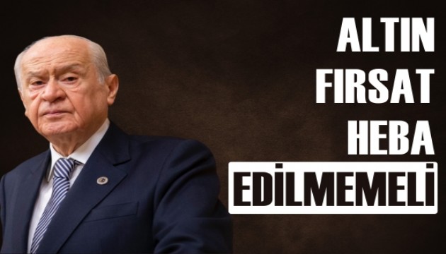 "Altın fırsatın" heba edilmemesi gerektiğini dile getiren Bahçeli, "Coğrafyayı vatan yapan millet çatısı altındaki kardeşlik hissiyat ve hususiyeti zedelenmemelidir." ifadelerini kullandı.