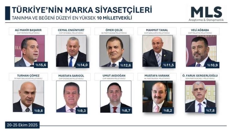 MLS Araştırma’nın 28 ilde 20–25 Ekim 2025 tarihleri arasında 28 ilde 2 bin 620 kişiyle yüz yüze yaptığı ankette Türkiye’nin en tanınan ve en beğenilen milletvekillerini belirledi.