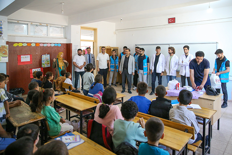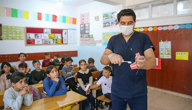 Doktor adayları, çocuklara sağlık taraması yaptı; diş fırçası, diş macunu ve kitap hediye etti.