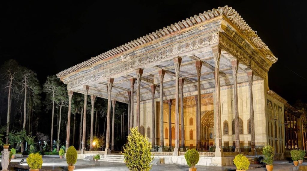 Dünyanın en büyük meydanlarından biri olan Nakş-ı Cihan Meydanı'nın hemen yanı başında bulunan Çehel Sütun Sarayı, zarif sütunları ve tarihi freskleriyle biliniyor. Bölgeden gelen iddialar, saldırıların yarattığı sarsıntı ve doğrudan isabetler nedeniyle yapının mimari bütünlüğünün ciddi şekilde bozulduğu yönünde.Büyük bir havuzun sonunda, bir parkın ortasında yer alan saray SafeviŞahı I. Abbas tarafından, şahın eğlencesi ve kabul törenlerinde kullanılmak amacıyla yaptırılmıştır.Sarayın ismindeki çehel sözcüğü Farsça "kırk" anlamına gelmektedir ki saray ismini ("Kırk Sütun") giriş kısmını destekleyen yirmi ince ahşap sütundan alır; girişin önündeki havuzun suyuna yansımasıyla ahşap sütunların sayısının 40'a çıkması, sarayın bu adı almasına neden olmuştur.