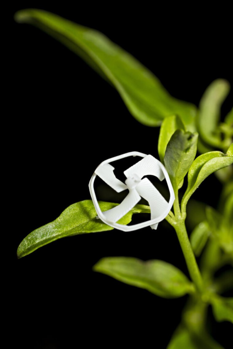 Robot, harici bir manyetik alanın etkisiyle mıknatıslarının itilip çekilmesi sayesinde dönerek havalanıyor.