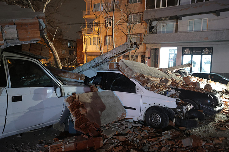 Duvar kenarında park halinde bulunan otomobil, minibüs ve pikap türü 10 araç molozların altında kaldı.