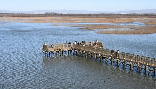 Sahip olduğu zengin bitki örtüsü ve su kaynaklarıyla kuşların göç yolu üzerinde bulunan alanı ziyaret edenler, göl çevresinde yürüyüş yaptı, Kuş Gözlem Kulesi ve iskeleden bölgedeki eşsiz manzarayı fotoğrafladı.