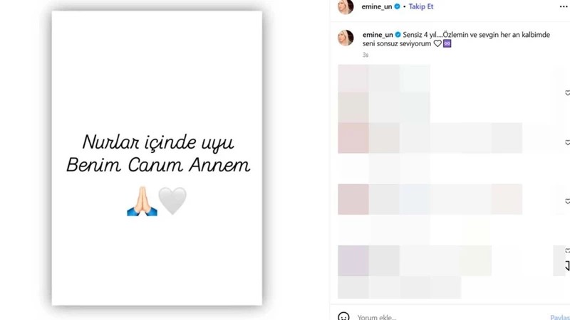 Emine Ün, annesinin vefatının 4. yılında sosyal medya hesabından duygusal bir paylaşımda bulundu.