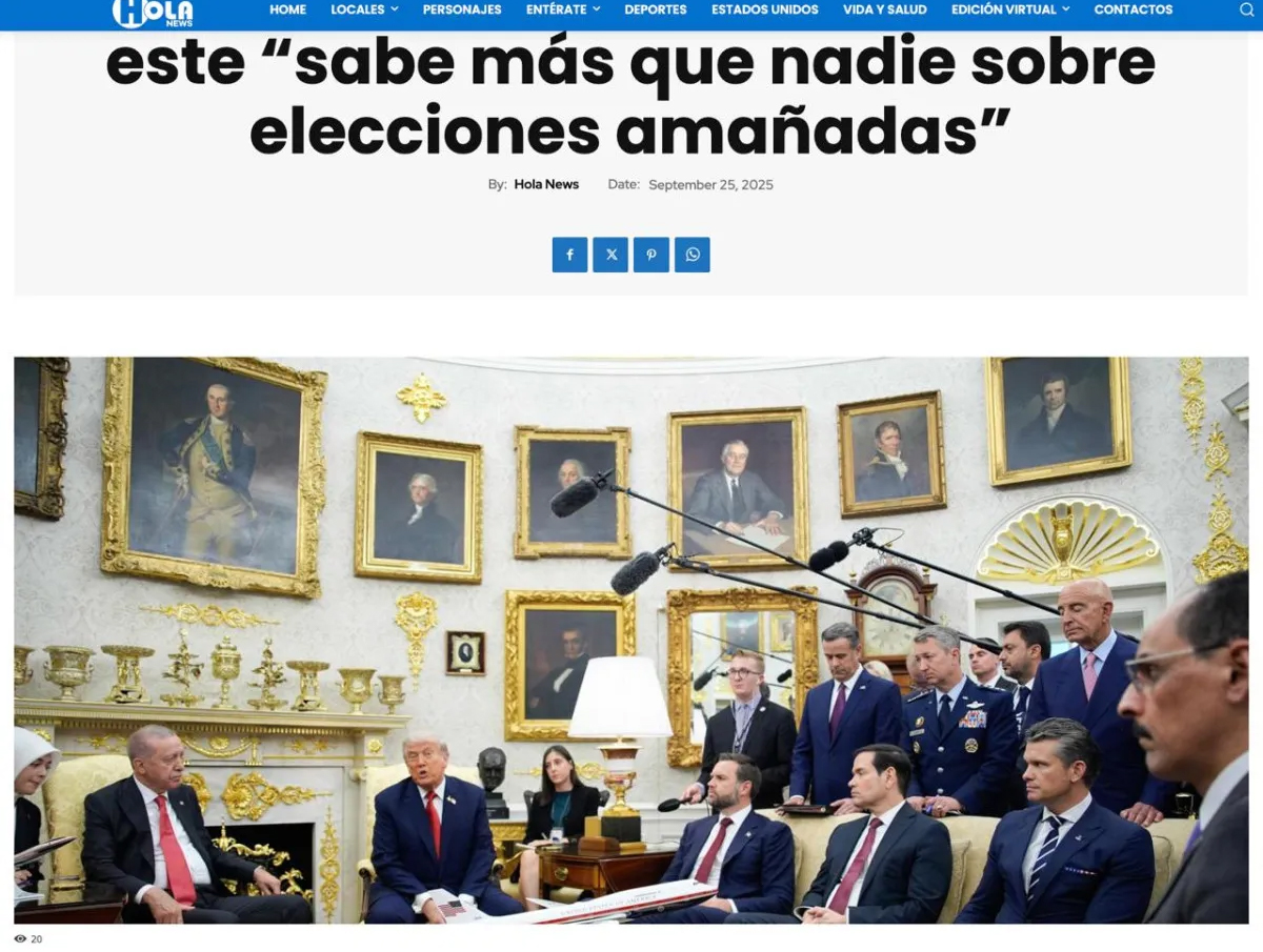 İspanyol basınından Hola News, Trump’ın konuşmasında Erdoğan’ın Rusya Devlet Başkanı Vladimir Putin ve Ukrayna Devlet Başkanı Vladimir Zelenski ile iyi ilişkilerine vurgu yaptığını aktardı. Haberde, Trump’ın “Erdoğan’a herkesin saygı duyuyor, ben de saygı duyuyorum, büyük bir nüfuza sahip” sözlerine yer verildi.