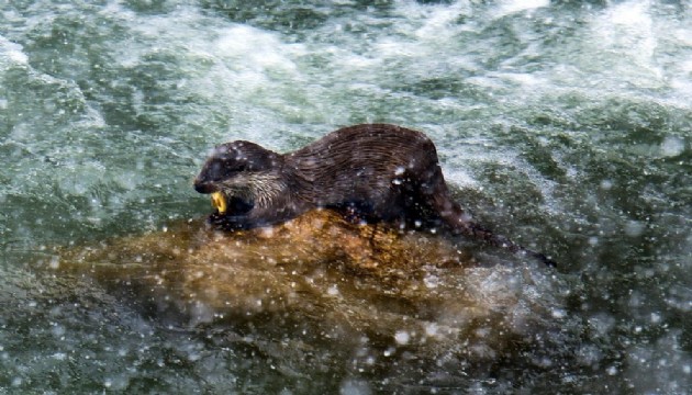 Dünya Doğa ve Doğal Kaynakları Koruma Birliği (IUCN) tarafından nesli tükenmekte olan hayvanlar kategorisinde yer alan su samuru, Kemaliye ilçesinde Fırat Nehri kıyısında çevredekilerin cep telefonu kameralarıyla kaydedildi.