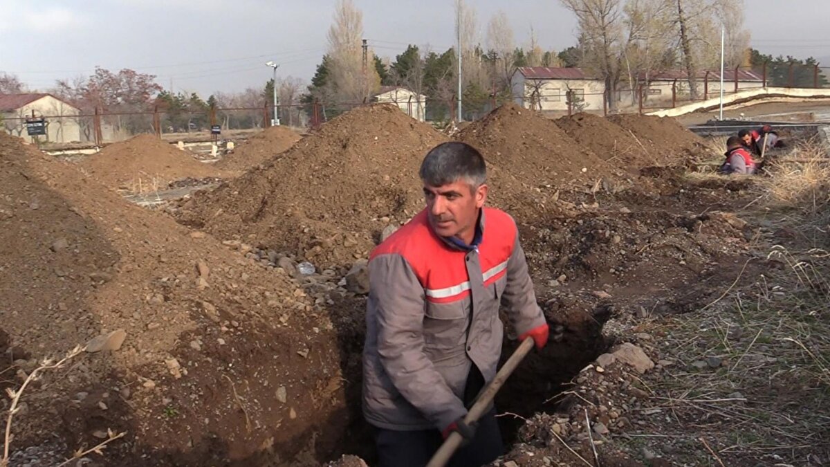 Asri Mezarlık'ta belediye tarafından tahsis edilen ve yürüme yolları yapılan alanda mezarları kazma ve küreklerle düzenleyen işçilerden Köksal Çalışkan "Kışın şartlar ağır olduğu için toprak donuyor. Kış aylarında iş makineleri bile toprağı kazmakta zorlanıyor. Onun için biz de kış öncesi mezarları hazırlıyoruz. Her yıl 500-600 mezarı kazarak hazır hale getiriyoruz. Bu kış sezonu için 500 mezar kazımını tamamladık" dedi.