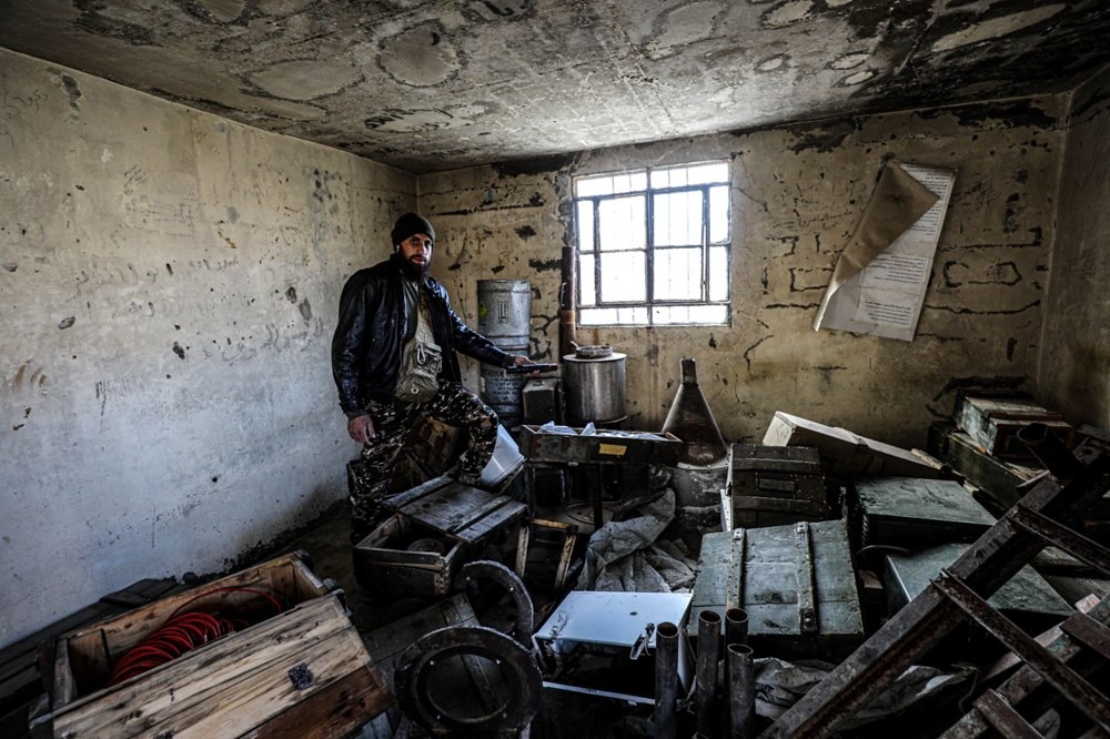 Başkent Şam yakınlarındaki Kasyun Dağı eteklerinde yer alan varil bombası üretim tesisi görüntülendi.