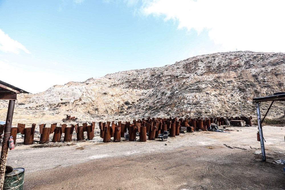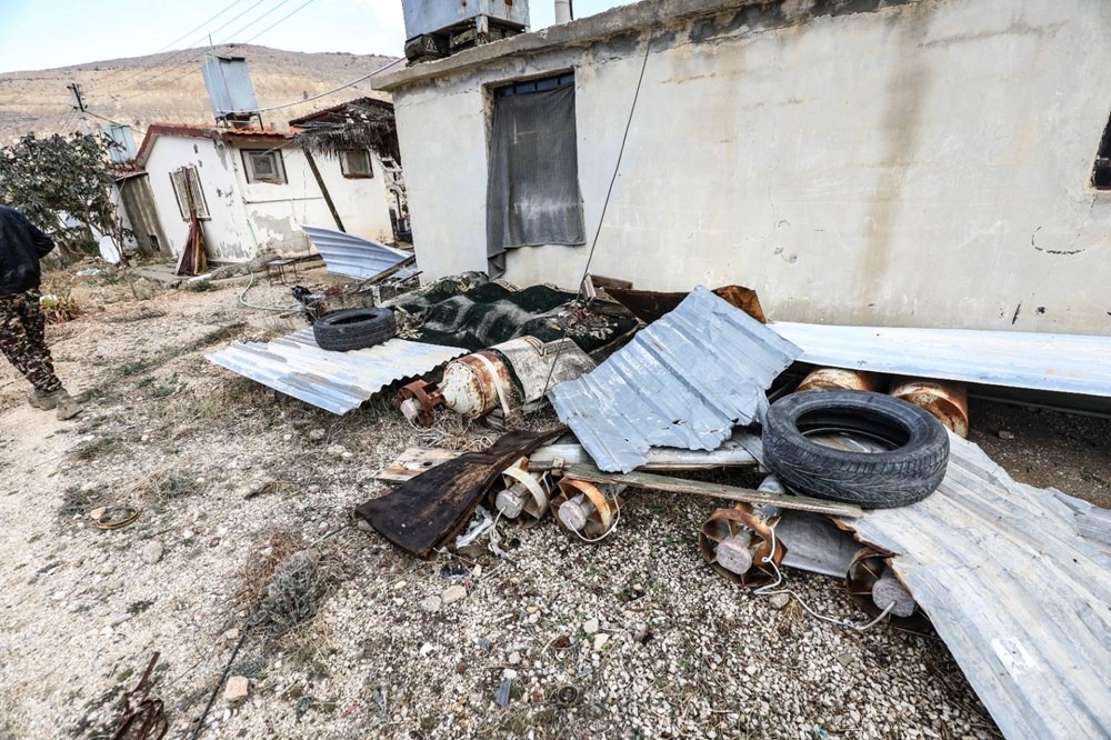 Tesis içerisinde çok sayıda varil, patlayıcı madde, fünye ve çeşitli metaller görülüyor.