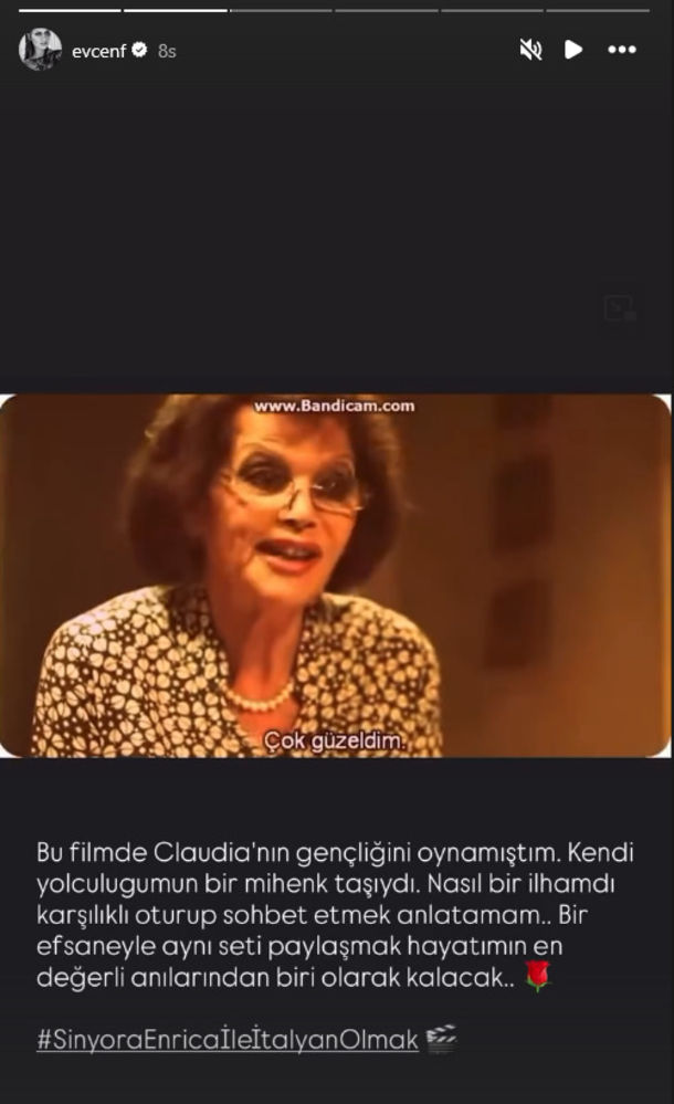 Fahriye Evcen; "Filmde Claudia'nın gençliğini oynamıştım. Kendi yolculuğumun bir mihenk taşıydı. Nasıl bir ilhamdı, karşılıklı oturup sohbet etmek nasıl bir deneyimdi anlatamam. Bir efsaneyle aynı seti paylaşmak, hayatımın en değerli anılarından biri olarak kalacak" dedi.