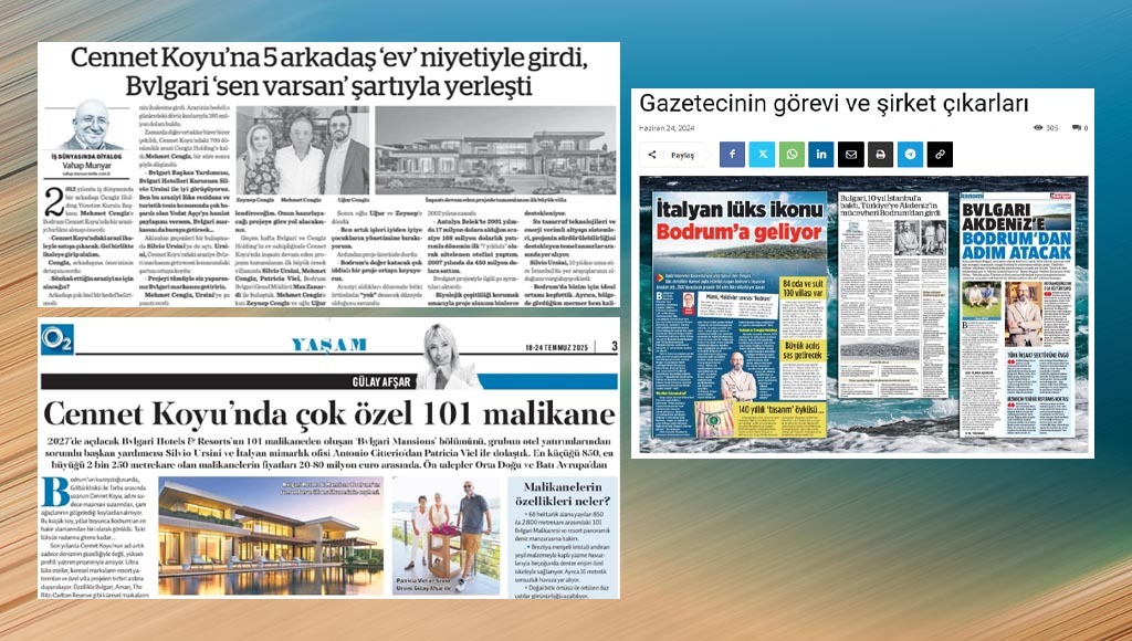 Ben de geçen yılki yazıları “Gazetecinin görevi ve şirket çıkarları” başlıklı yazımda eleştirmiştim. Çünkü yazılarda “lüks ikonu” denilen şirketin projesi tanıtılıyor, bölge halkının Cennet Koyu’ndaki inşaat projesine karşı yıllara yayılan mücadelesi ve yargı kararları yok sayılıyordu. Şirket çıkarları, halkın çıkarlarından üstün tutuluyordu.