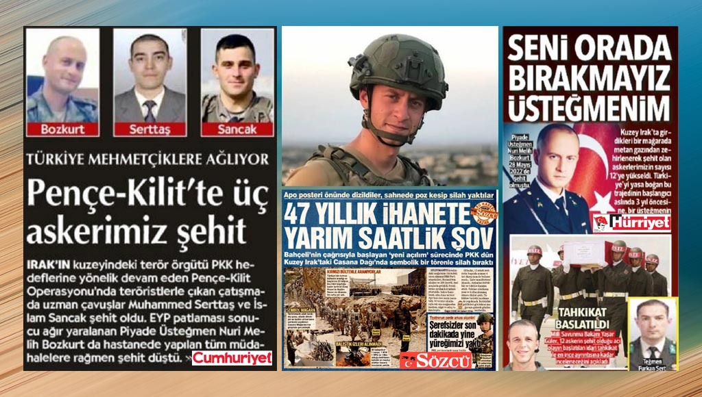 “PKK, şov öncesinde naaşı 3 yıldır bulunamayan şehit Üsteğmen Nuri Melih Bozkurt’a ait görüntüleri gece yarısı sosyal medyadan servis etti.”