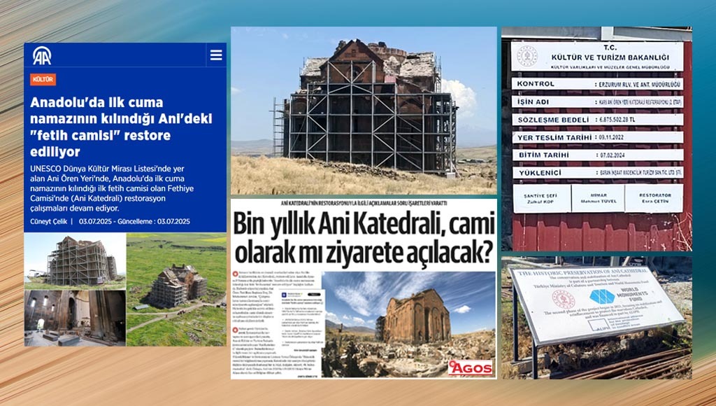 Anadolu Ajansı’nın, “Anadolu'da ilk cuma namazının kılındığı Ani'deki "fetih camisi" restore ediliyor” haberi Agos’ta endişe yarattı. 11 Temmuz’daki “Bin yıllık Ani Katedrali, cami olarak mı ziyarete açılacak?” manşetinde “AA’nın haberi, katedralin cami olarak ziyarete açılması yönünde bir düşünce olduğunu akıllara getirdi” denildi.