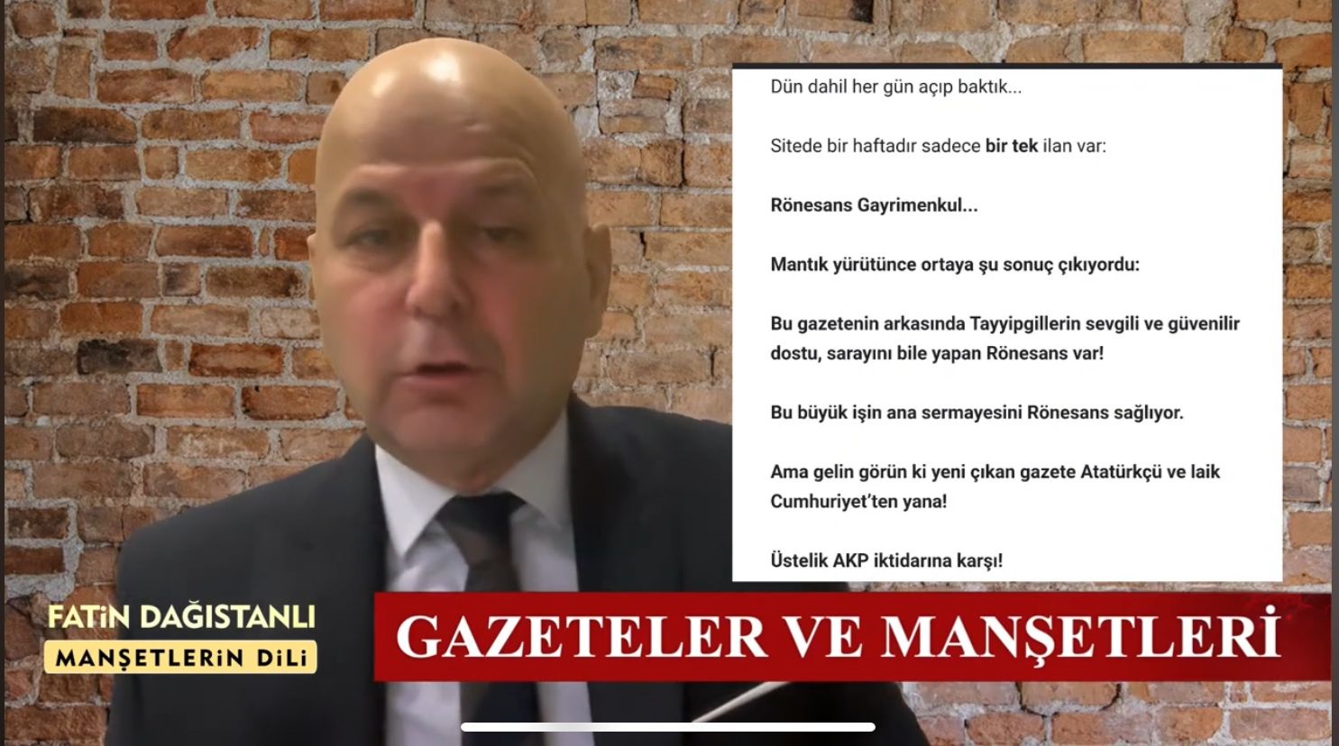 Gazeteci Fatin Dağıstanlı, YouTube kanalında Manşetlerin Dili programında, 19 Aralık'ta yayın hayatına başlayan Nefes Gazetesi'yle ilgili dikkat çeken açıklamalarda bulundu.
