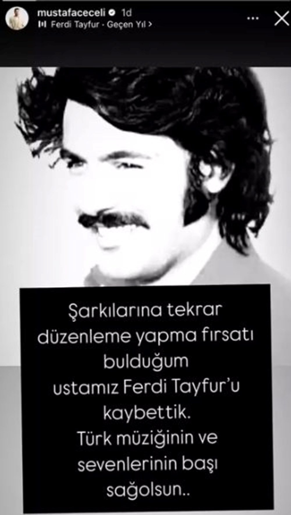 "Şarkılarına tekrar düzenleme yapma fırsatı bulduğum ustamız Ferdi Tayfur'u kaybettik. Türk müziğinin ve sevenlerinin başı sağ olsun."