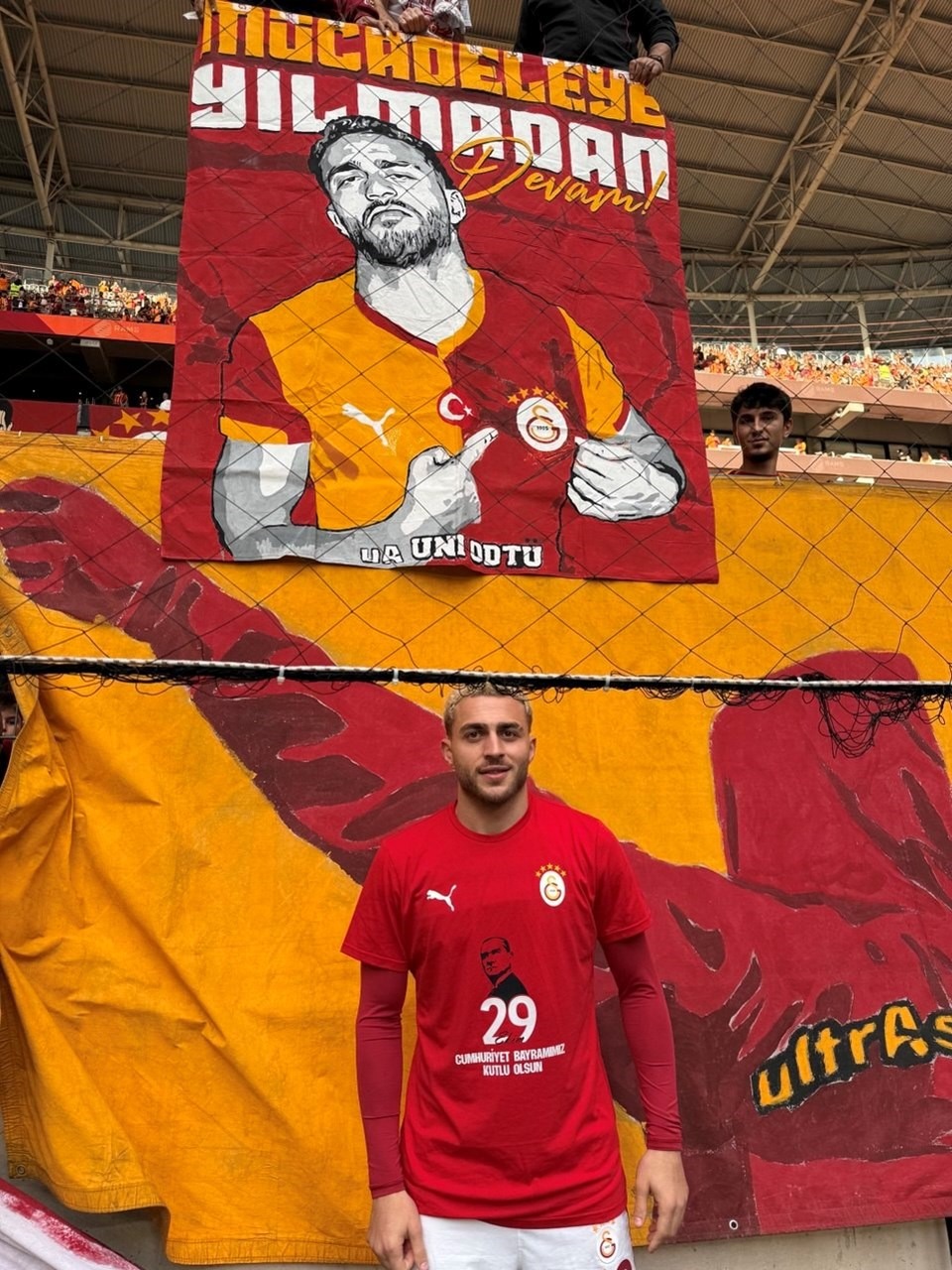 Sarı-kırmızılı taraftarlar, Barış Alper Yılmaz için özel bir pankart hazırladı.