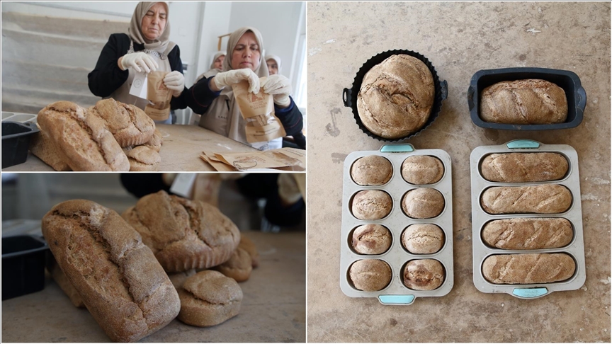 Organik un, ekşi maya, kaya tuzu ve kaynak suyu kullanılarak kooperatifteki diğer kadınların maharetli ellerinde eski ahşap teknede yoğrulan hamur, "Hitit ekmeği" için özel olarak dizayn edilen taş fırında odun ateşinde pişirildi.