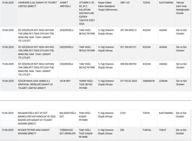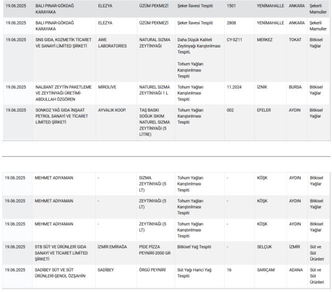 İşte gıdada hile yapan diğer firmalar ve ürünleri: