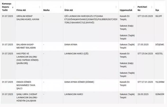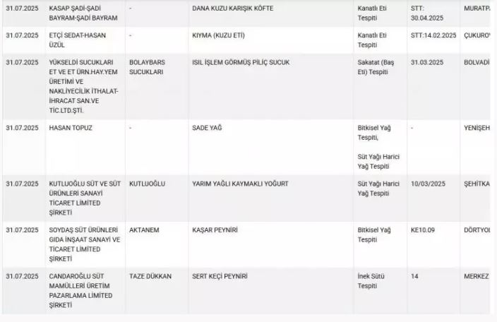 Vatandaşların sağlıklı gıdaya erişmesi için Tarım ve Orman Bakanlığı yaptığı denetimler sonrası uygunsuz olan ürünleri ifşa etmeye devam ediyor.