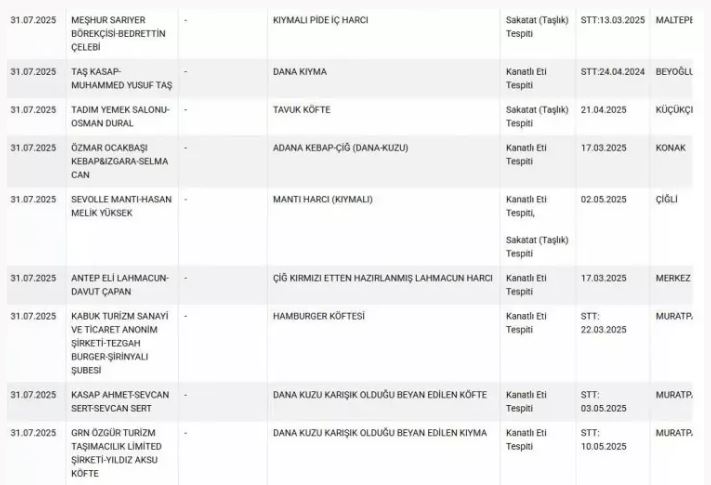 Son yapılan testlerde; dana salamda domuz eti, baharatta gıdada kullanımına izin verilmeyen boya ve kıymada sakatat kullanımı tespit edildi.