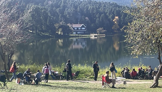 Göl çevresinde yürüyüş yapan, fotoğraf çeken ve piknik alanlarında zaman geçiren ziyaretçiler, sonbahar manzarasının tadını çıkardı.