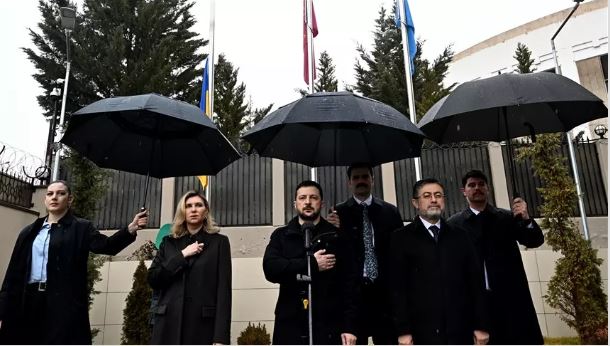 Resmi ziyaret kapsamında bulunduğu Ankara'da ülkesinin Ankara'daki yeni büyükelçilik binasının açılışında konuşan Ukrayna Devlet Başkanı Volodimir Zelenskiy, "Ülke olarak barış istiyoruz, savaşın bitmesini istiyoruz. Ama tabii söz konusu savaşın bitmesinin belli bir güvenlik garantilerine dayanmasını istiyoruz. Bu güvenlik garantilerinin ABD, Avrupa Birliği, Türkiye dahil olmak üzere tüm Avrupa tarafından verilmesini istiyoruz" dedi.