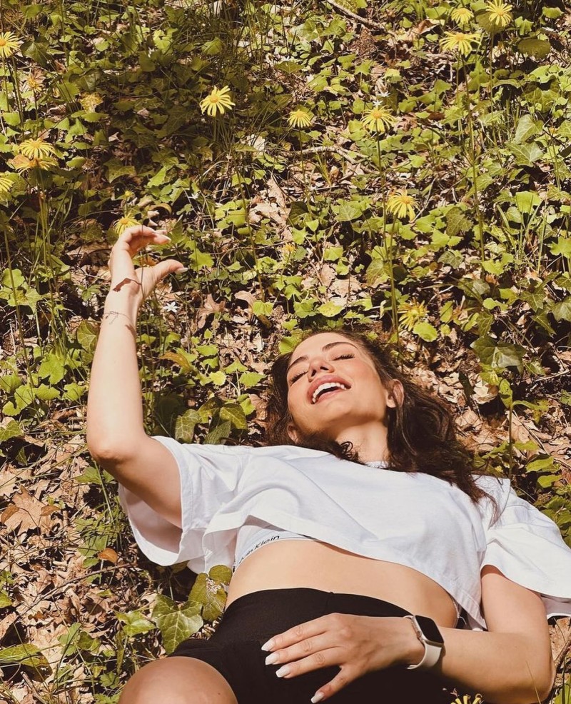 Güneşli havada, ormanda çekilen karelerini peş peşe yayınlayan ünlü isim, gönderisine; "En sevdiğim zamanlar" mesajını yazdı.