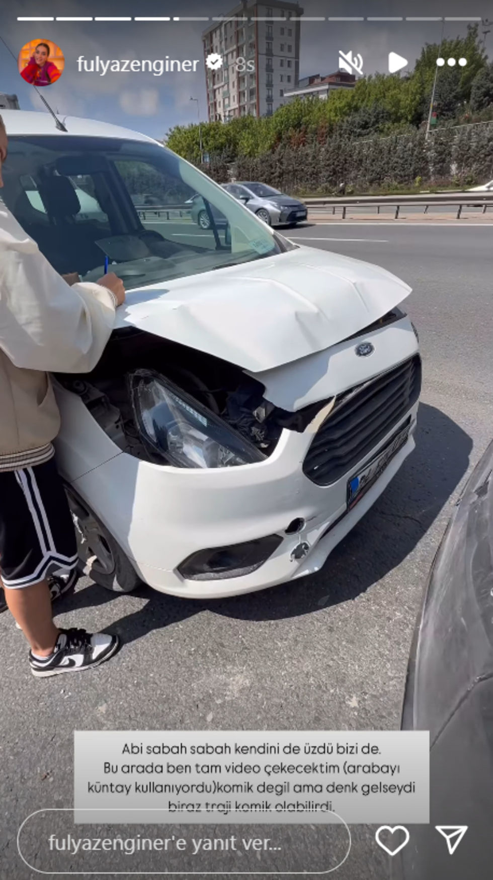 Fulya Zenginer şimdi ise kaza haberiyle gündeme geldi. Zenginer, arkadan çarpan bir aracın neden olduğu ufak bir trafik kazası geçirdi. Aracın direksiyonunda eşi Kuntay Tarık Evren vardı.