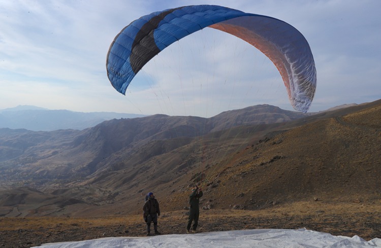Metrelerce yüksekten süzülerek dağlarla çevrili Hakkari'nin semalarını renklendiren sporcular, heyecan dolu dakikalar yaşayarak becerilerini geliştirme fırsatı buldu.
