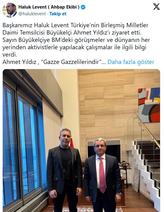 Kısa bir süre önce ABD'de sivil toplum kuruluşu Ahbap America'yı kuran Levent, Birleşmiş Milletlerde görüşmeler yaptı.