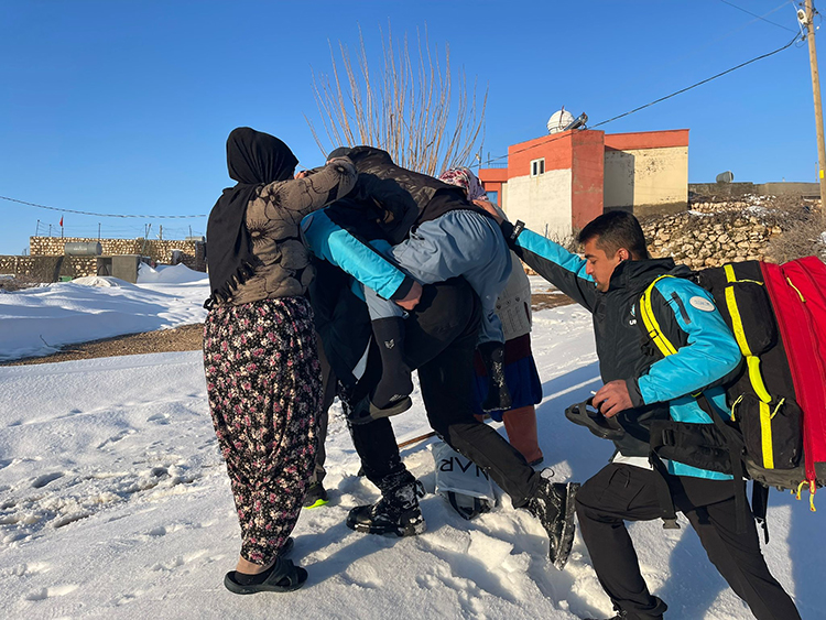 Aracın belirli bir noktadan sonra karda ilerleyememesi üzerine UMKE'de görevli hemşire Hüseyin Cihan Özdoğru, hastayı yaklaşık 500 metre uzaklıktaki ambulansa sırtında taşıdı.