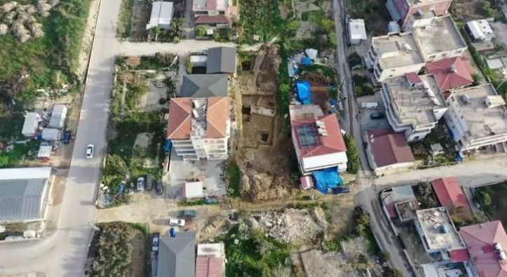 Binanın temel kazısı sırasında işçilerin mozaikli bir alana rastlaması üzerine inşaat çalışması durduruldu.