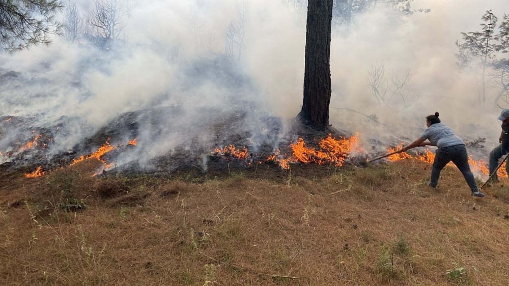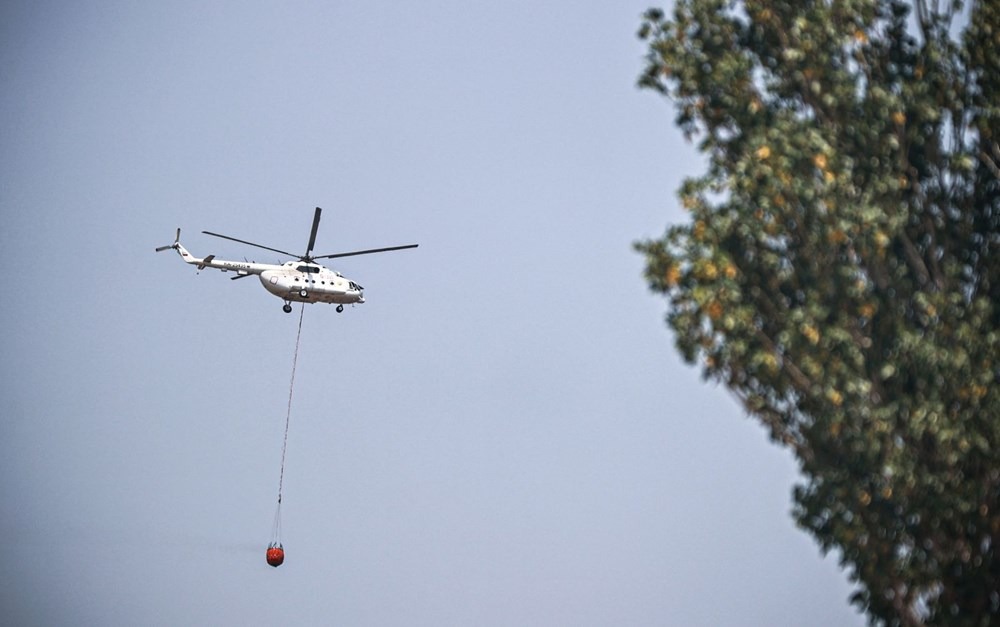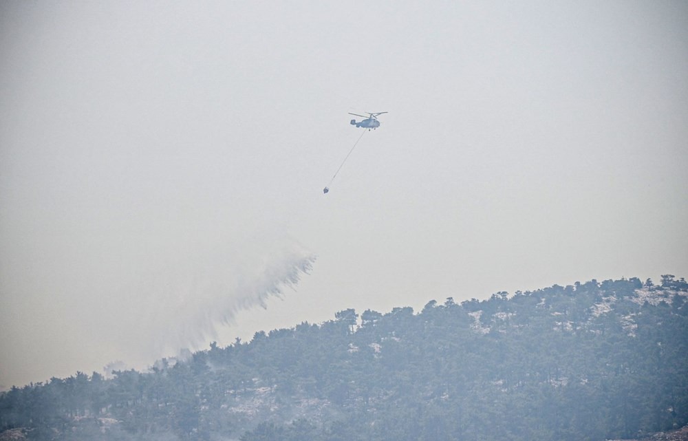 Bölgeye ulaşan yangın söndürme helikopteri alevlere müdahaleye başladı. Karadan da ekiplerin alevleri kontrol altına almak için çalışmalarının sürdüğü bildirildi.