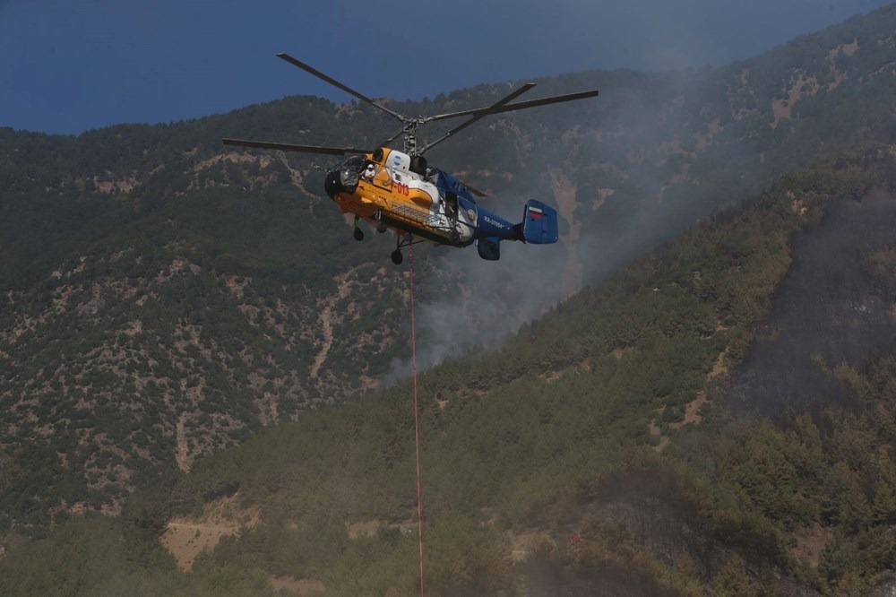 Söndürme uçağı ve helikopterleri sabahın ilk ışıklarıyla başlayan havadan müdahale devam ediyor.