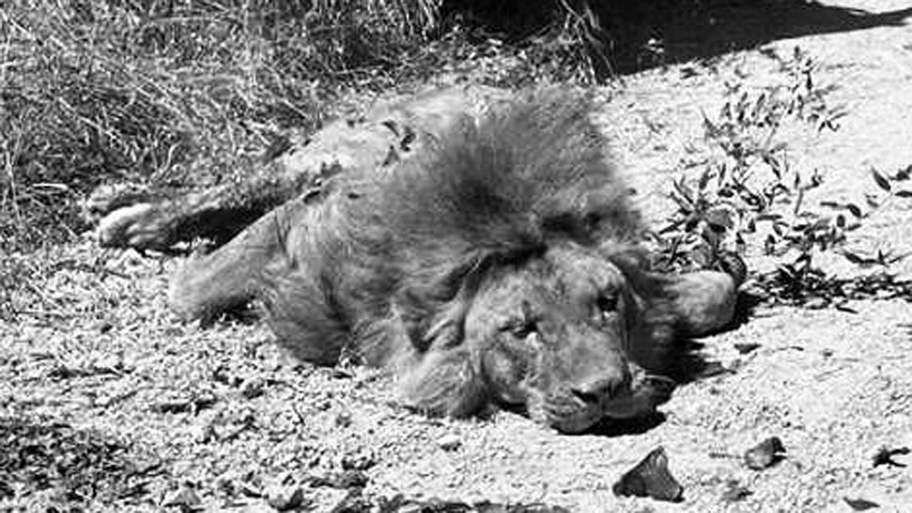 Yeri tespit edilen aslan, avcılar tarafından tüfekle vurularak öldürdü.