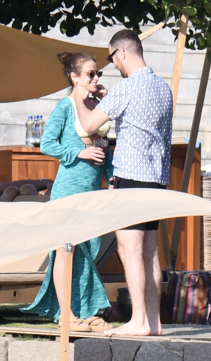 Deniz kenarında gün boyunca güneşin ve maviliğin keyfini çıkaran çift, katıldıkları bir etkinlikten sonra deniz kenarına indi.