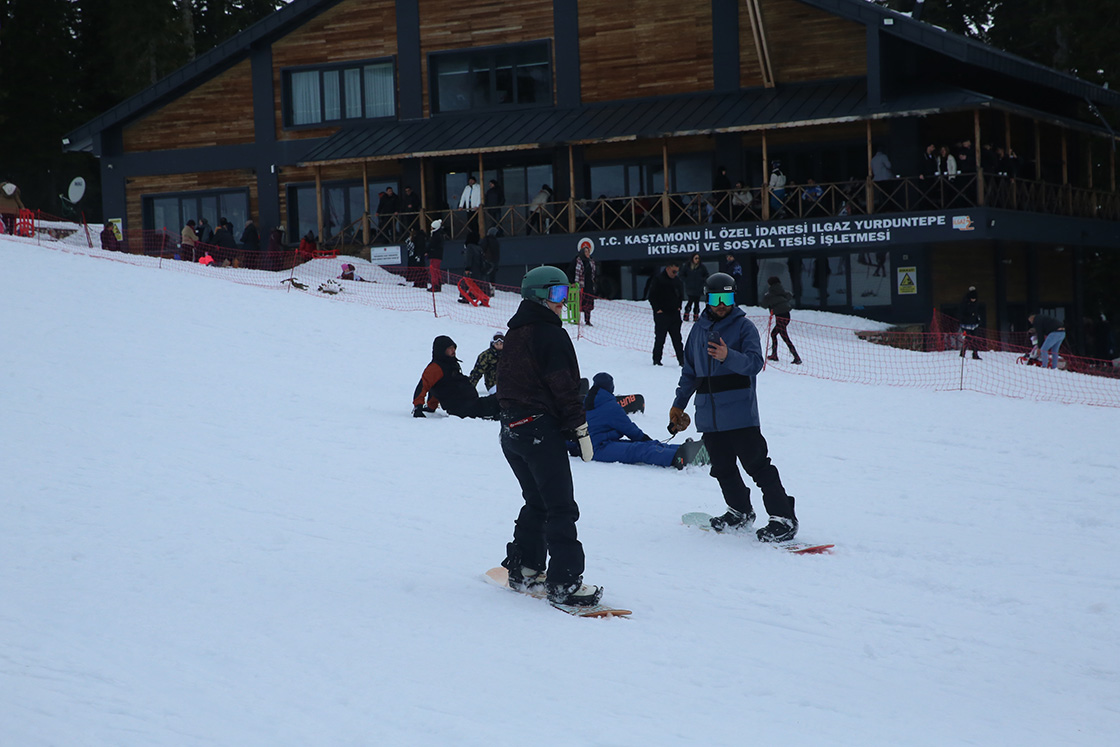 Kayak merkezine gelen yerli ve yabancı ziyaretçiler, Ilgaz Dağı'nın doğal güzellikleri arasında kayak ve snowboard yaparak kızakla kayarak keyifli vakit geçirdi.