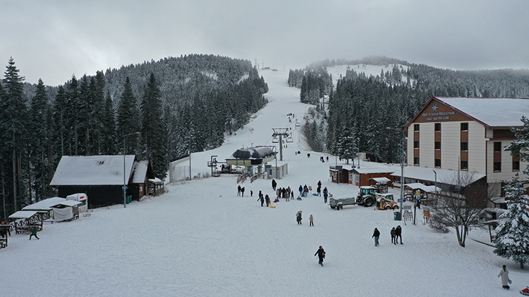 Doğal güzellikler arasında teleferikle dolaşıp, yürüyüş imkanı bulan konuklar, kayak ve snowboard yapıp kızakla kayarak keyifli vakit geçiriyor.