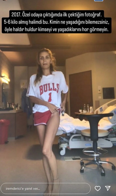 Derici, 2017 yılında hastanede çekilen karesini ise "2017. Özel odaya çıktığımda ilk çektirdiğim fotoğraf. 5-6 kilo almış halimdi bu. Kimin ne yaşadığını bilemezsiniz..." notuyla paylaştı.