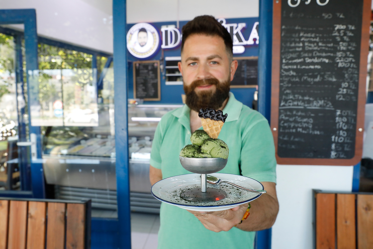 Atakum ilçesinde dondurma işletmecisi, tıbbi ve aromatik bitkiler arasında yer alan ısırgan otundan dondurma ve şekerleme üreterek satışa sundu.