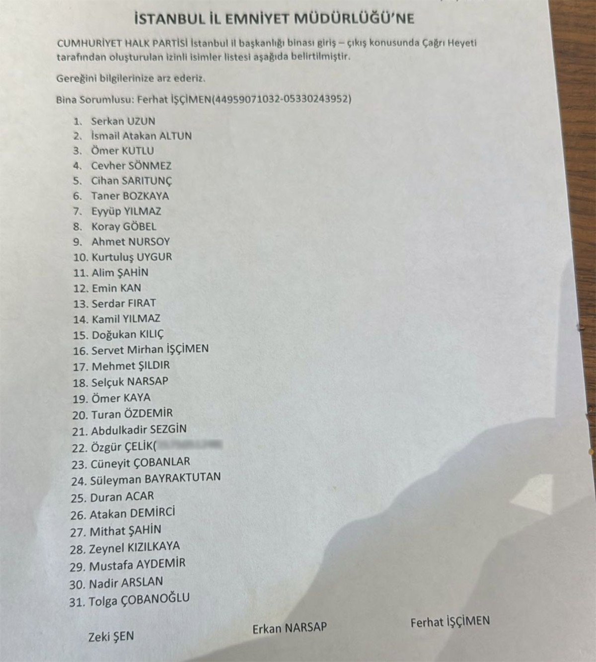 Listede yer alan Özgür Çelik'in ise İstanbul İl Başkanı Özgür Çelik olmadığı isimlerin karışmaması nedeniyle TC kimlik numarasının yazılması dikkat çekti.