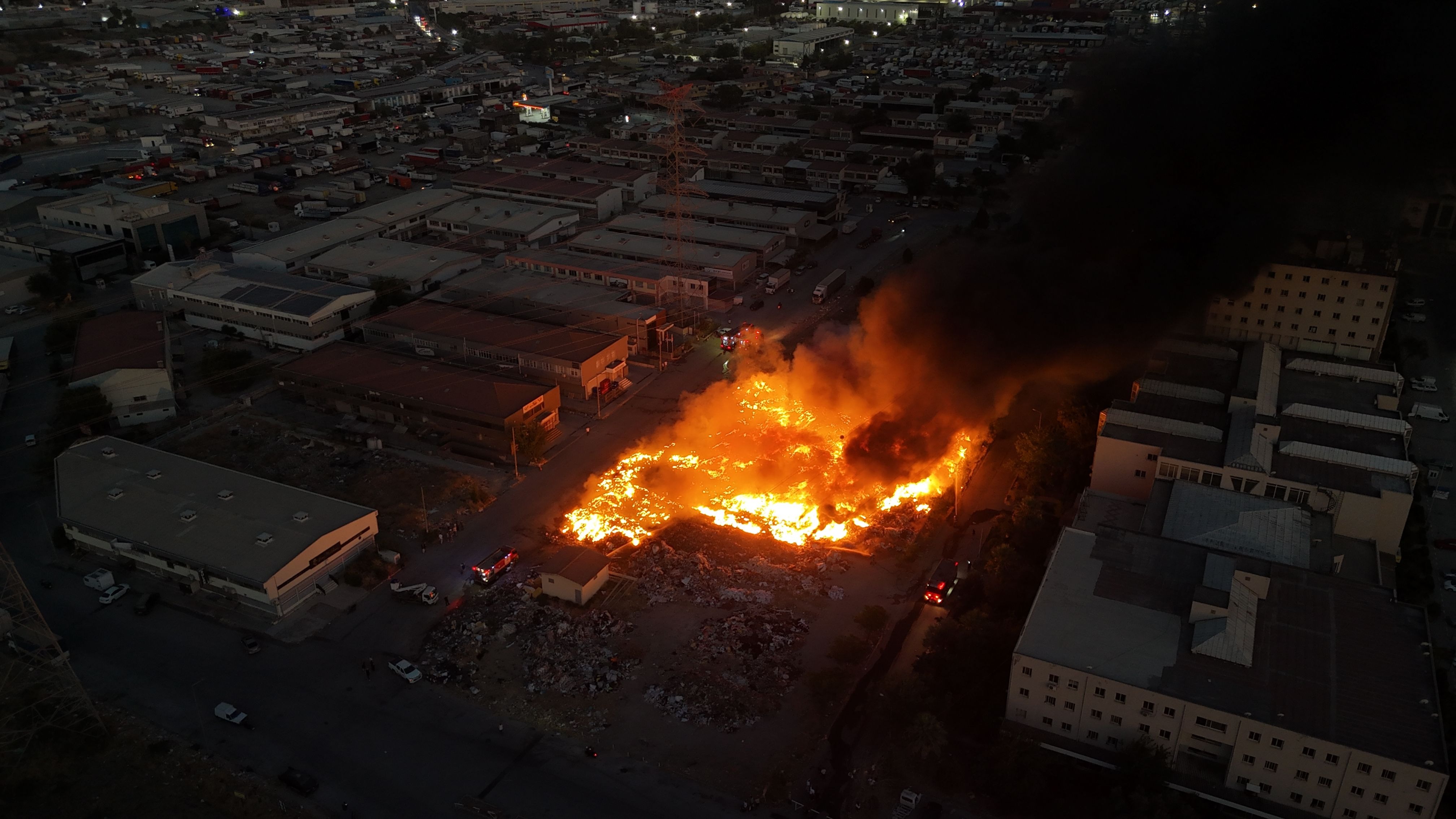 Yangın, kentin dört bir yanından görülürken ihbar üzerine bölgeye çok itfaiye, sağlık ve polis ekibi sevk edildi. Olay yerine gelen itfaiye ekipleri, geniş bir alanda etkili olan çöp yangınına müdahalede bulundu. Ayrıca, bölgeye getirilen iş makinaları, yangının çevredeki depolara sıçramaması için çalışma yaptı. Geceyi aydınlatan alevler dronla havadan görüntülenirken, söndürülmesi için çalışmalar sürdürülüyor.