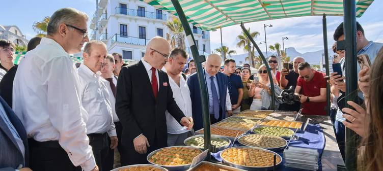 KKTC Turizm, Kültür, Gençlik ve Çevre Bakanlığı ile Girne Belediyesinin katkıları ile 14'üncüsü gerçekleştirilen Uluslararası Baklava Festivali'nde davetlilere baklava ikram edildi.