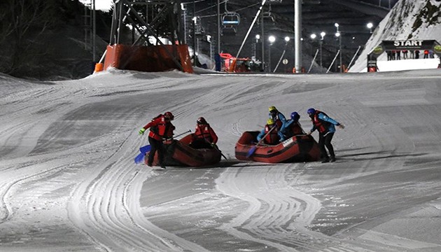 Merkezin 3 bin rakımlı pist alanında sıcaklığın sıfırın altında 15 dereceye kadar düştüğü havada bir araya gelen yarışmacılar, yaklaşık 300 metrelik parkurda kar üstünde botlarla kürek çekti.