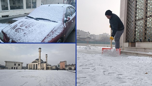 Kentte akşam başlayan sağanak, sabah saatlerinde yerini kar yağışına bıraktı. Yağışla beyaza bürünen kentte ekipler karla mücadele başlattı.
